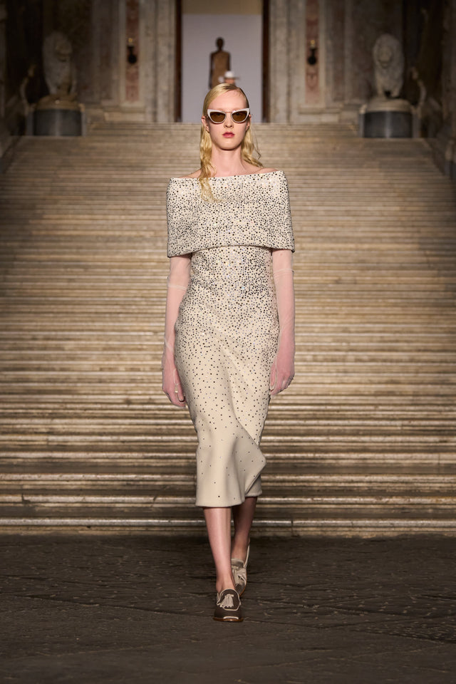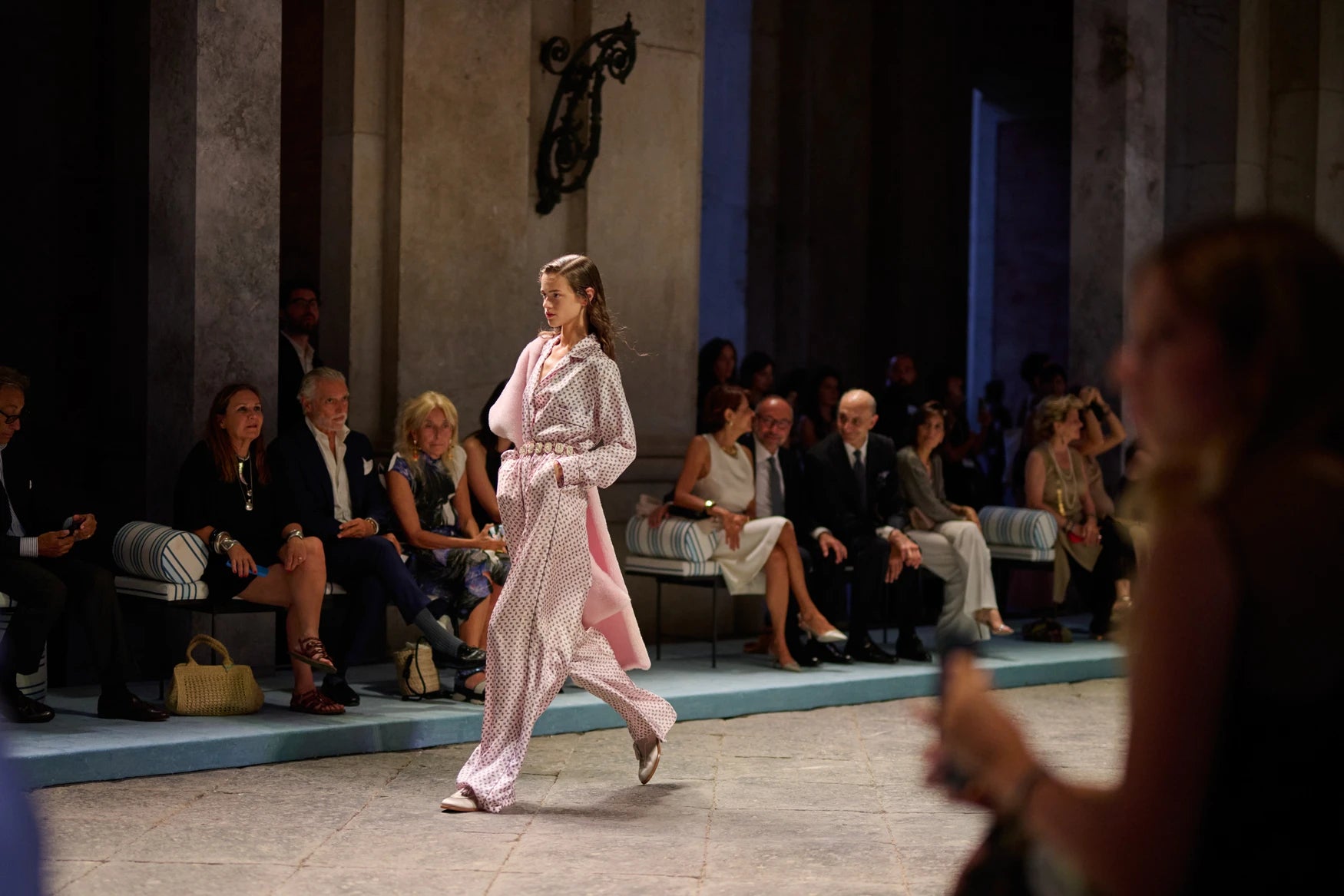 Unveiled in the magnificent setting of La Reggia di Caserta, the Resort 2026 show is a tribute to Italian style and to the vibrant Neapolitan energy. The collection draws inspiration from 1950s Italian cinema, the iconic sensuality of its leading ladies, and the refined art of Neapolitan tailoring.